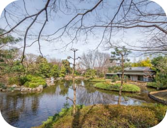 県内でも数少ない日本庭園づくりの公園。四季を通して梅、桜、ツツジ、アジサイ、モミジなどの植物がさまざまな色彩と香りを感じさせてくれます。近隣の愛宕神社と併せて、ゆったりとした時間をお過ごしください。