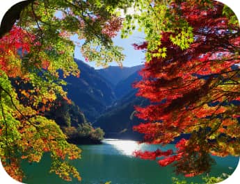 ロックフィル式の有間ダムでせき止められた人造湖。その大きさは1周約5km。有間渓谷へと続き、観光釣場もあります。特に新緑と紅葉の季節が美しい景観を望めます。湖畔の名栗カヌー工房には週末カヌー作りやカヌー体験に集う人々でにぎわいを見せます。