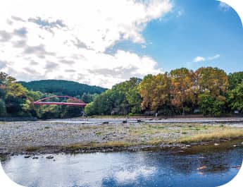 水深も浅く、親の目が行き届けば未就学児でも川遊びが楽しめる人気のスポットです。BBQやキャンプが手ぶらで楽しめるアウトドアスポットとして名高いですが、美しい景観の自然がもたらす開放感もあり、お散歩だけでも十分に楽しめる場所です。