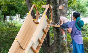 本来捨てられてしまうはずの端材は、自由な発想の工作物や、遊び心をくすぐるアスレチックに生まれ変わりました。