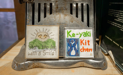 お客様がプレゼントしてくれたという手作りの刺繍(右)美穂さんが手作りされた刺繍(左)
