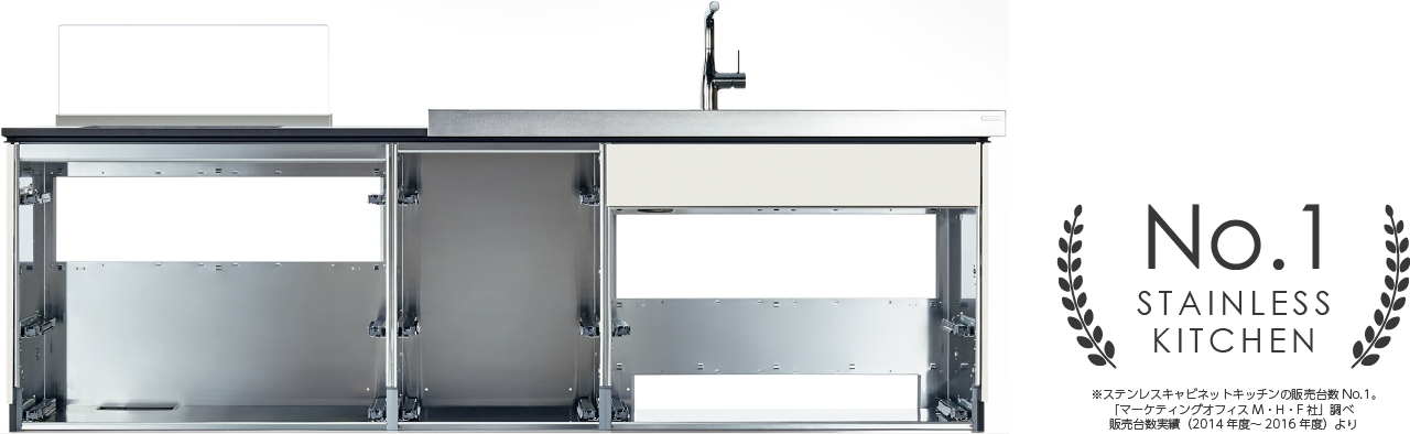 骨組みそのものをステンレスでつくり上げた、ステンレスキャビネット構造。