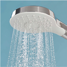 大粒の水玉をたっぷり浴びて頭の上からリフレッシュ。節水効果も。