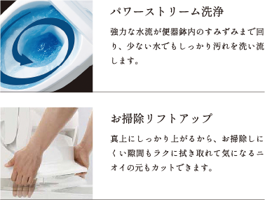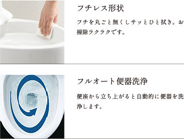 大きな手洗いボウルと新フチなし形状で、より使いやすく清潔なトイレ空間に。