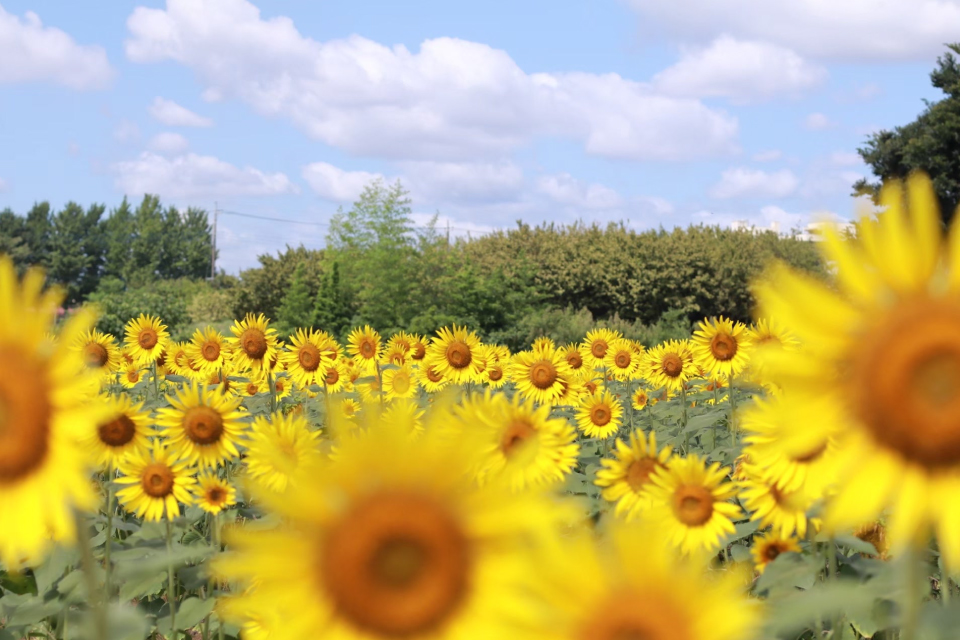 所沢夏の風物詩ともいえるひまわり畑まで自転車で5分。開花期には約4,500平方メートルの畑一面に、約2万本のひまわりが満開に咲き誇ります。[車で4分]