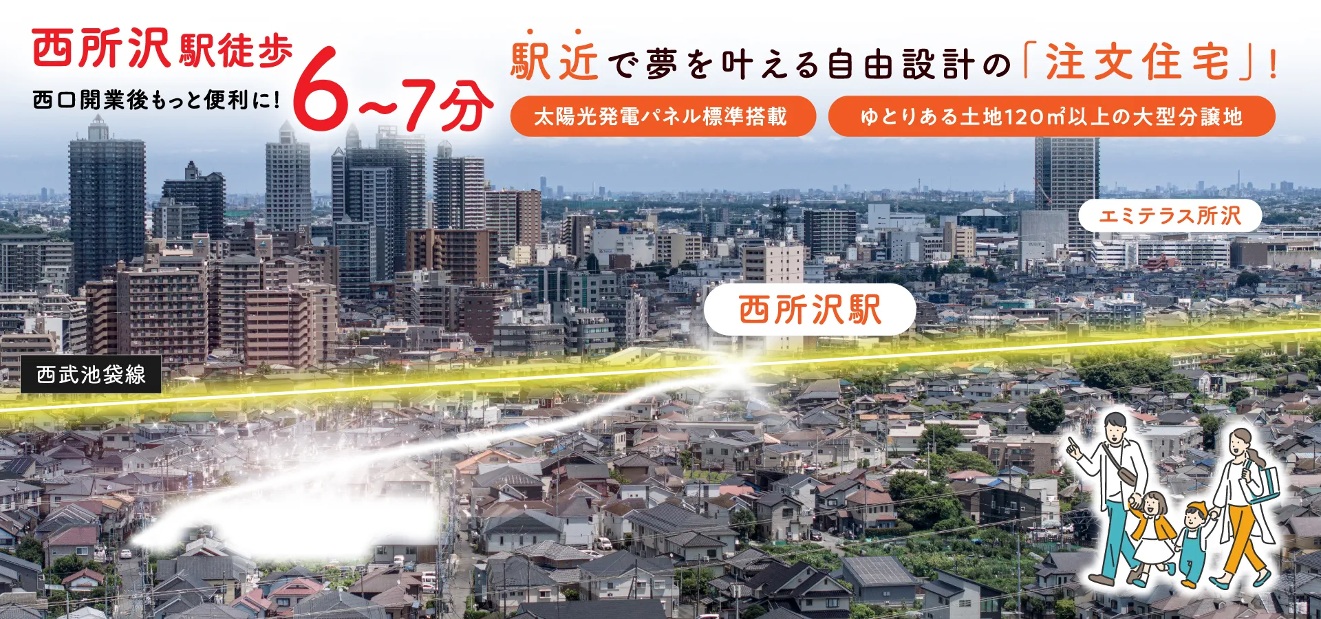 再開発が進む所沢と宅地開発された小手指の間に位置する「西所沢」駅最寄りの山口アドレス。閑静な住宅街だけでなく、新旧の店や住まいが混在したモザイク状の街並みで次世代のファミリーが愉しめるエリア。多様な商業施設や飲食店が周辺に点在し、日常のお買い物や食事に便利なロケーションで、心もカラダも、家族みんなが歓ぶ心地よい暮らしを、住協の自由設計の家でお届けします―。