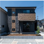 スクエアな外観は、グレーとブラウンの2トーンでスタイリッシュにデザイン。等間隔に配した小窓など、家族のこだわりが存分に反映されています。