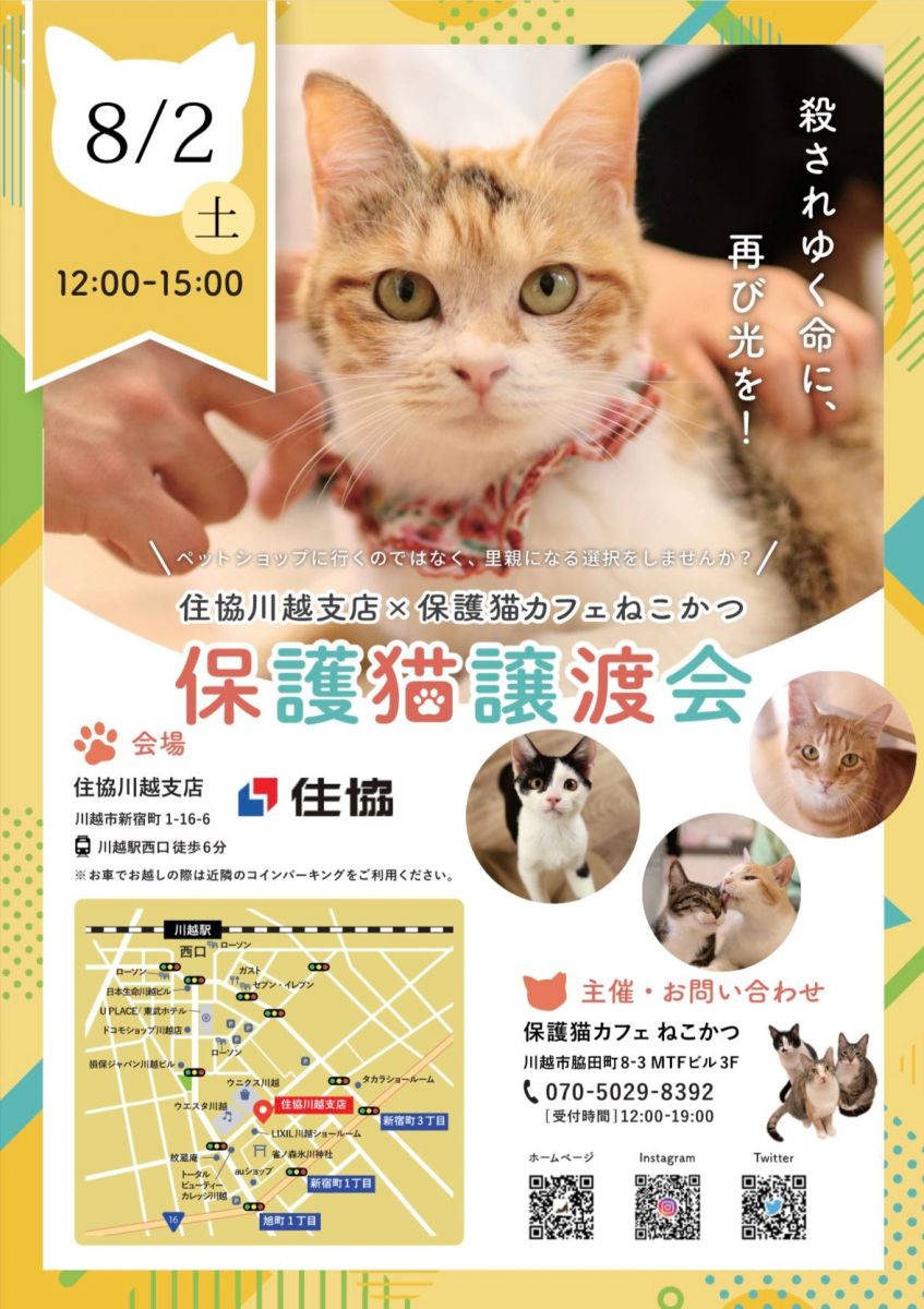 8月2日(土)に住協川越支店にて犬猫譲渡会を開催いたします!