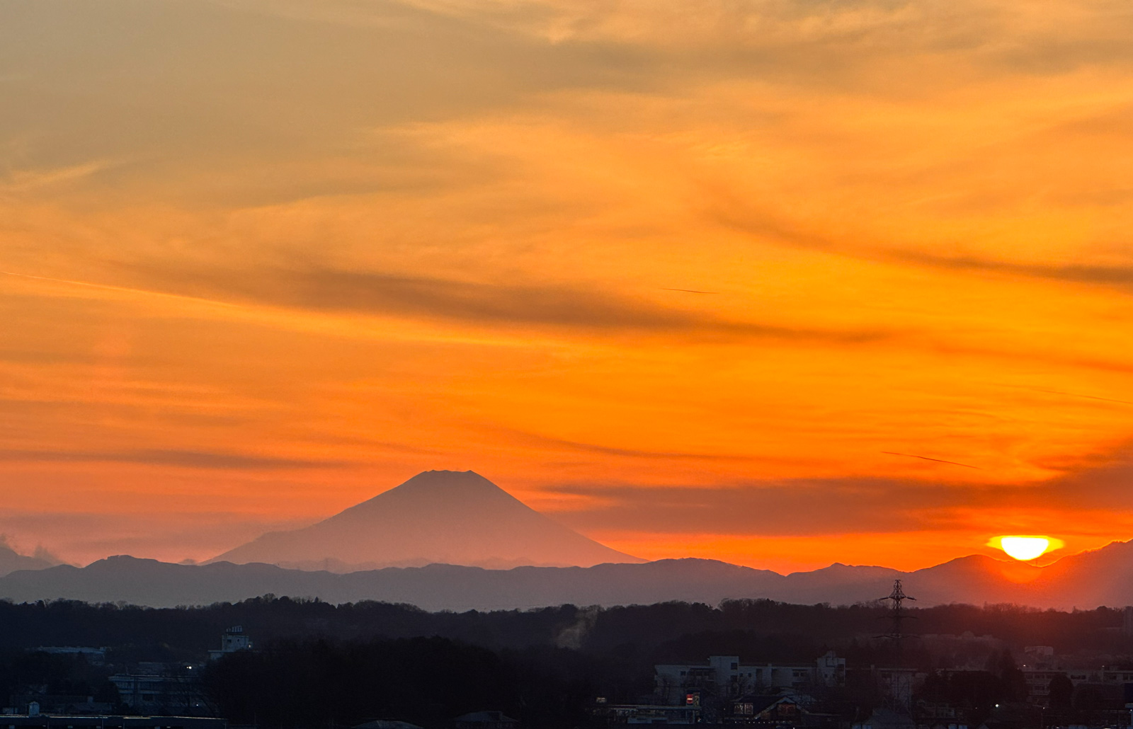 【一日を振り返るような夕方のシルエット富士山】