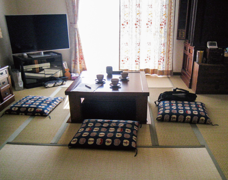 和洋折衷の掘りごたつ式リビングでくつろぎながら、