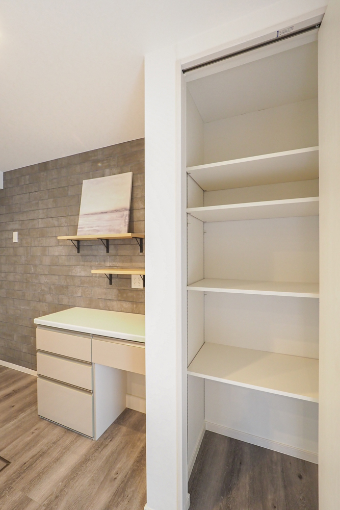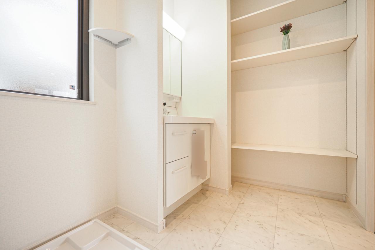 大き目のリネン庫も備わっているので、バスタオルや着替えの収納にも便利です。