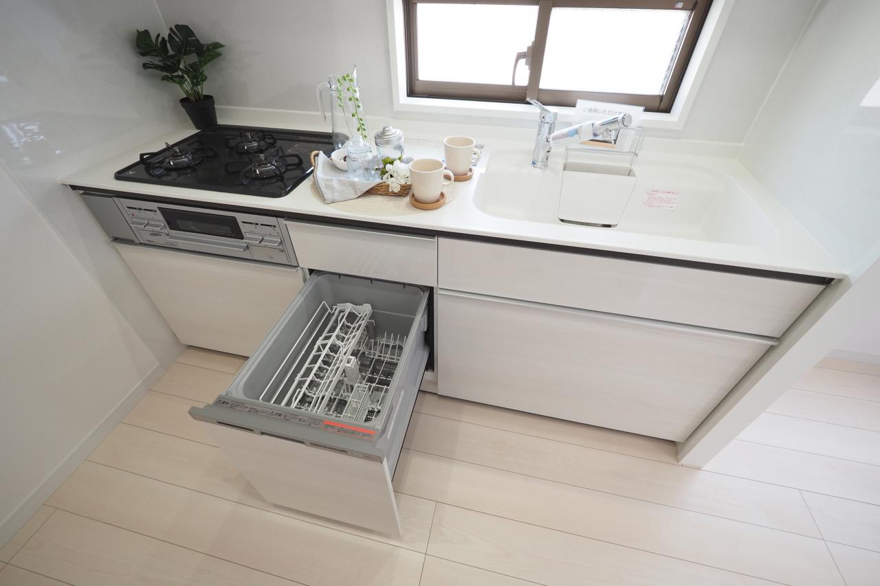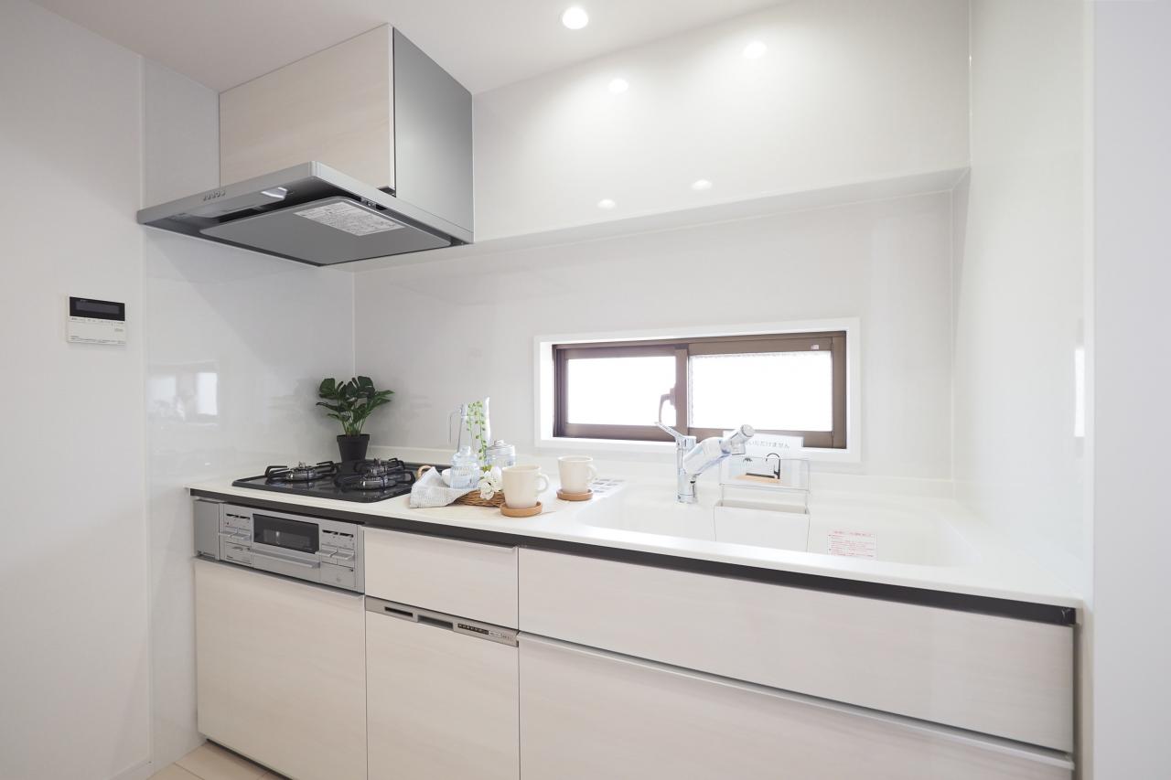 食洗機搭載システムキッチンを採用。換気もできる採光窓付き