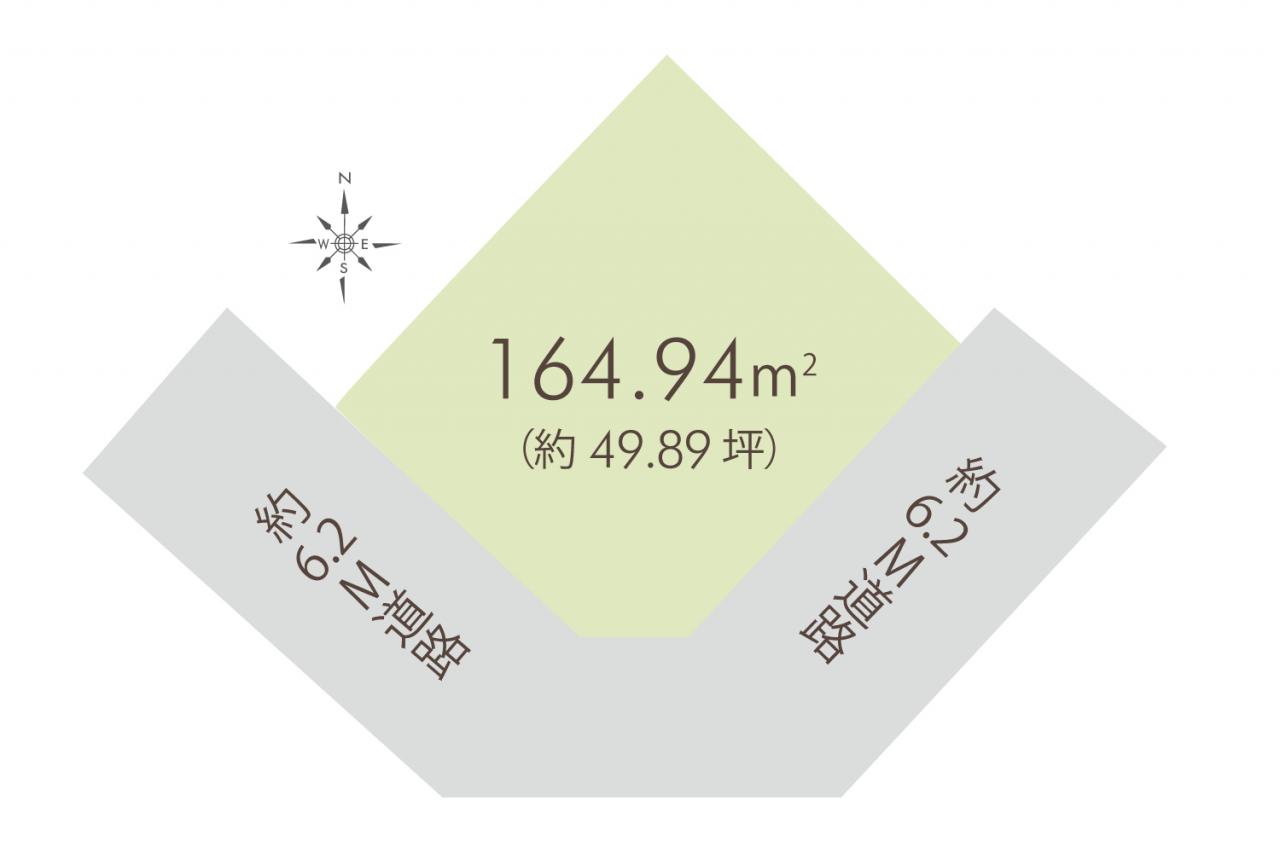 | 接道 | 南東側 6.2m 角地 公道、南西側 6.2m 角地 公道 | 私道負担 | - |
