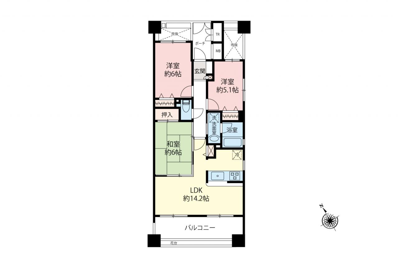 ■日当たりと風通しに恵まれた三方角部屋のお住まい