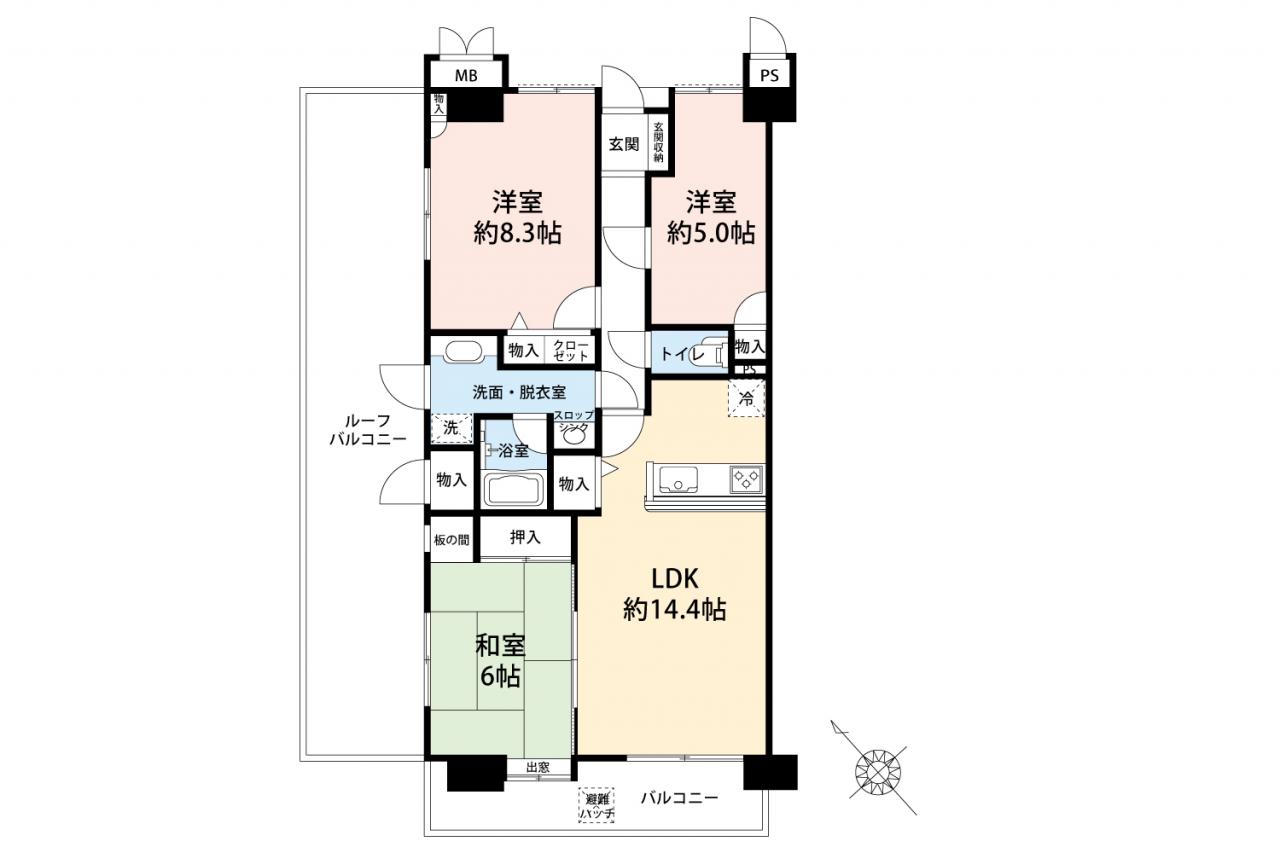 ペット飼育可 ルーフバルコニー 最上階 角住戸3LDK