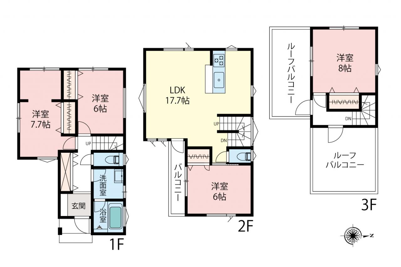 上福岡駅まで徒歩13分 全室6帖以上 2階リビング ルーフバルコニー 全室2面窓