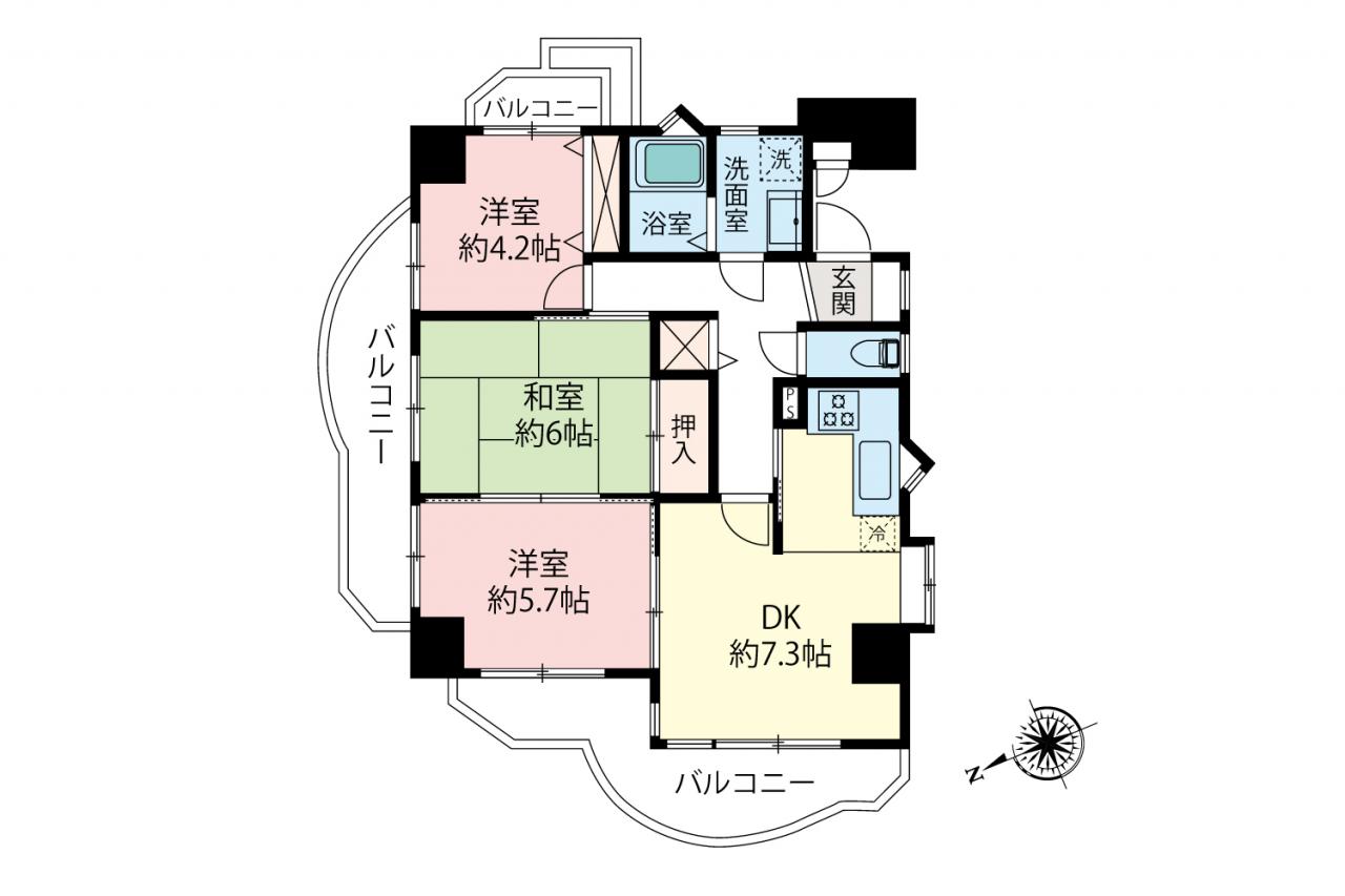 バルコニー 3面バルコニー