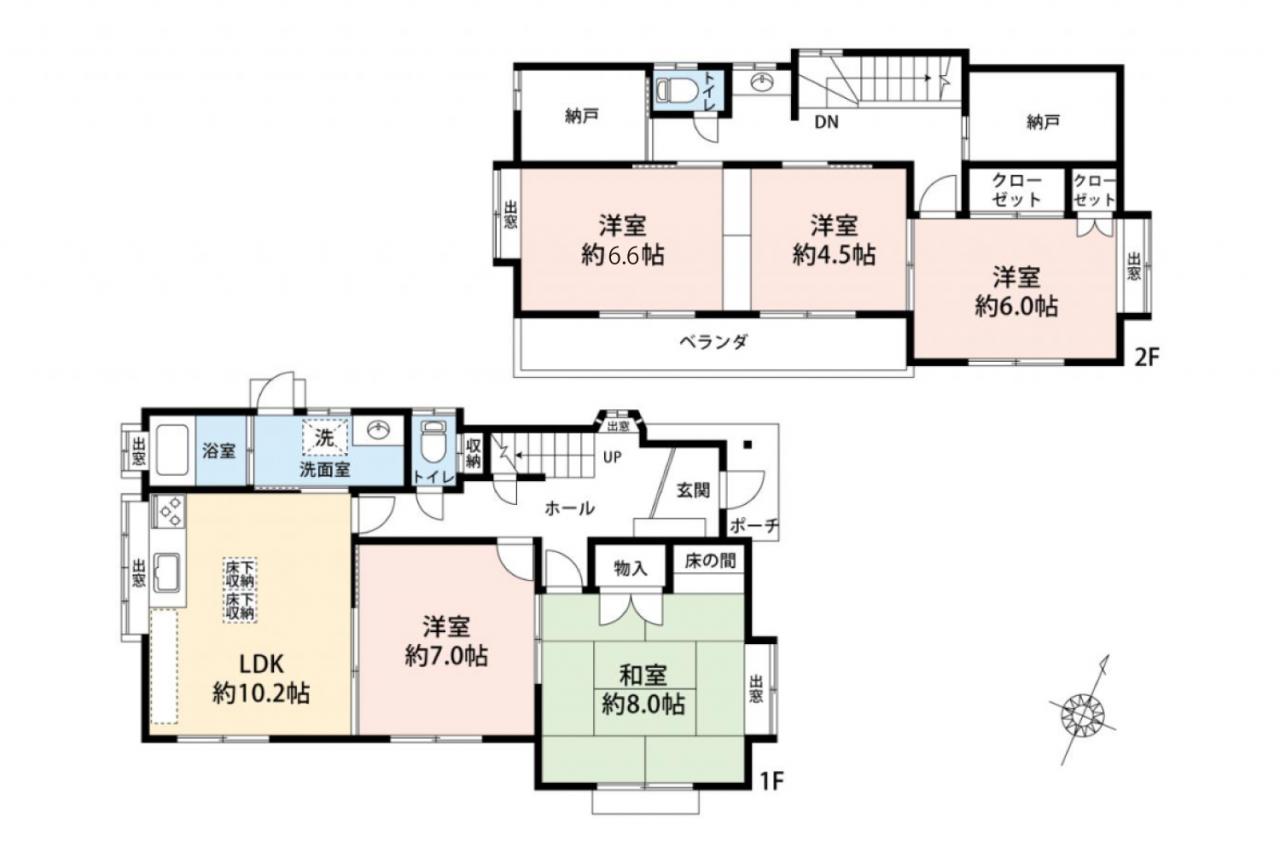 南東×北東角地の明るく開放感のある立地!スーパーやコンビニが周辺に充実していて、暮らしやすい環境です。広々とした敷地を活かして、5LDKのゆとりある間取になっています!見学したい・資料がほしいなどご希望がございましたら、まずはお気軽にお問い合わせください♪
