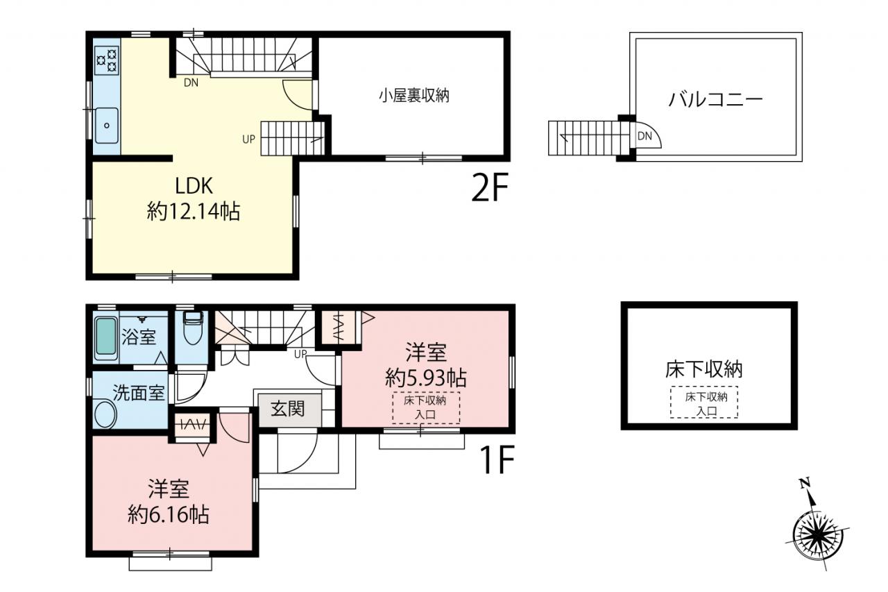 小屋裏収納 地下収納 南通路面 2階リビング