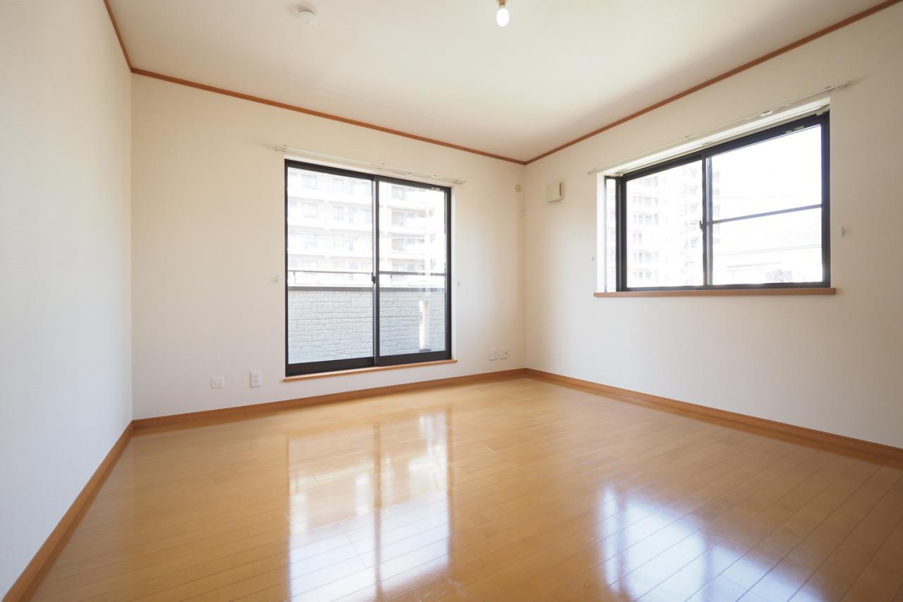 【2階10.5帖洋室】ゆとりある広さで主寝室としてもお使いいただけるお部屋です。ベッドと家電を置いてもリラックスできる広さです!
