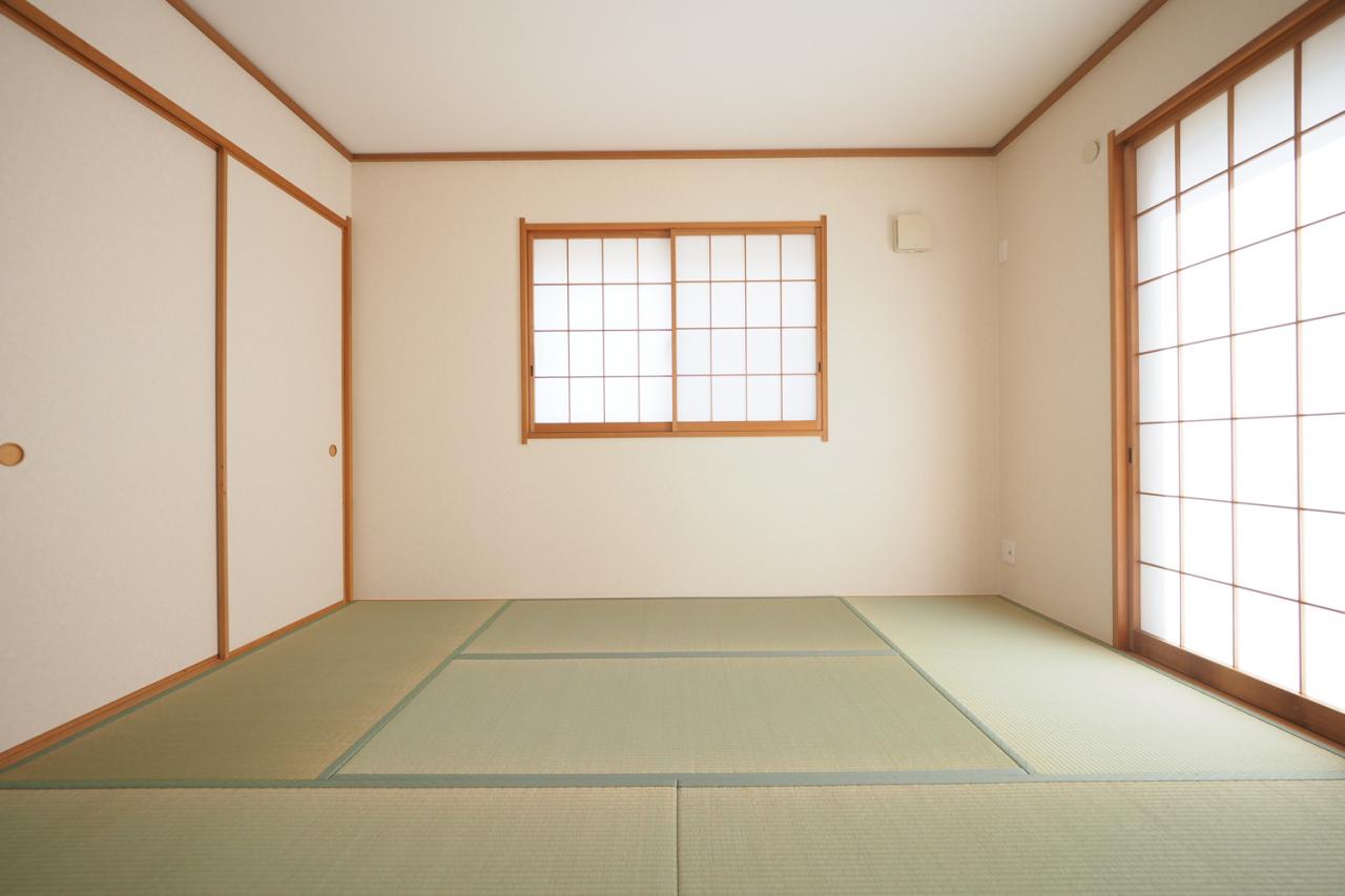 【リビング横の和室6.0帖】横になって寛げる癒しの空間。リビングとつながる和室は6.0帖のお部屋。お客さまが遊びに来た時にも使えますし、ちょっと疲れた時にお昼寝できるのも嬉しいですね!