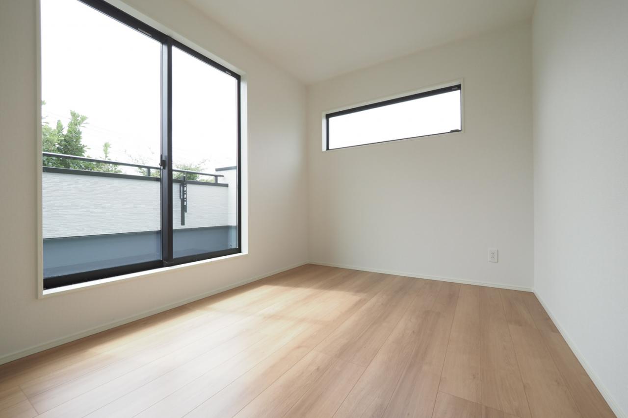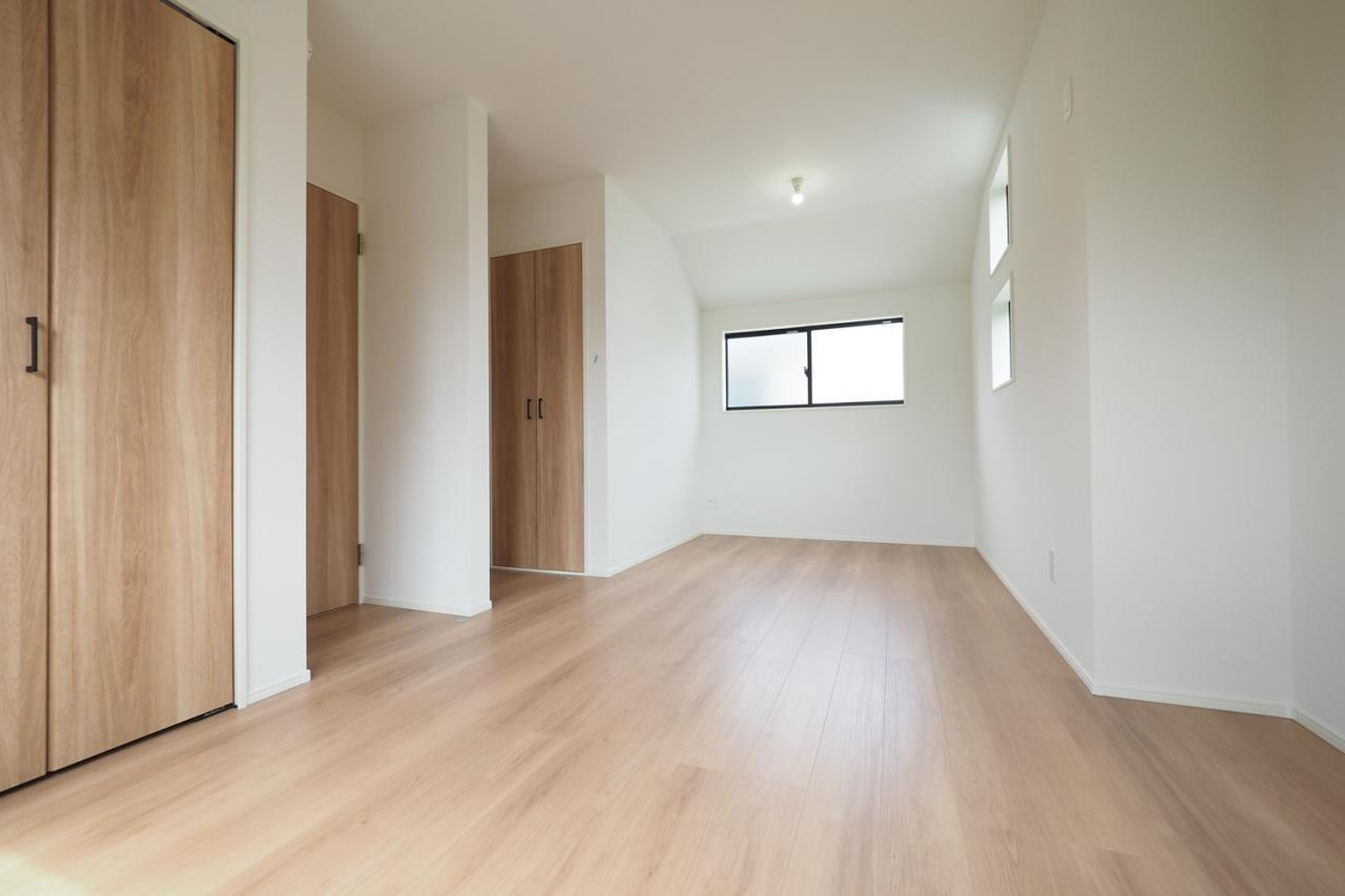 2階9.5帖洋室。お子様の成長に合わせて、将来2部屋に出来る2ドア1ルームのお部屋。