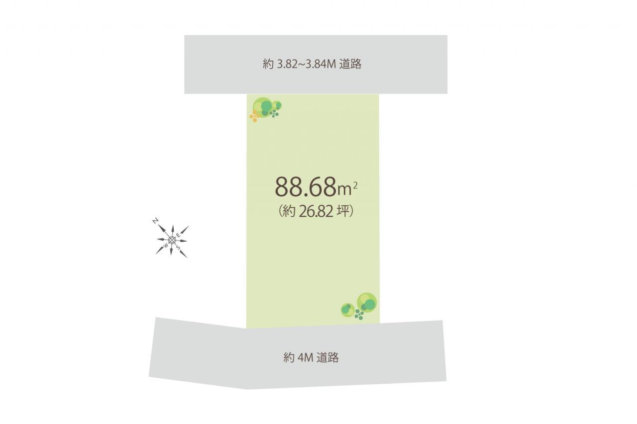 南西、北東の2方向が道路に面した開放感のある立地です。スーパーやコンビニ、ドラッグストアなど商業施設が徒歩圏内に充実したお買い物に便利な立地です。お好みのハウスメーカーで建築していただけますでのまずはお気軽にお問い合わせください。