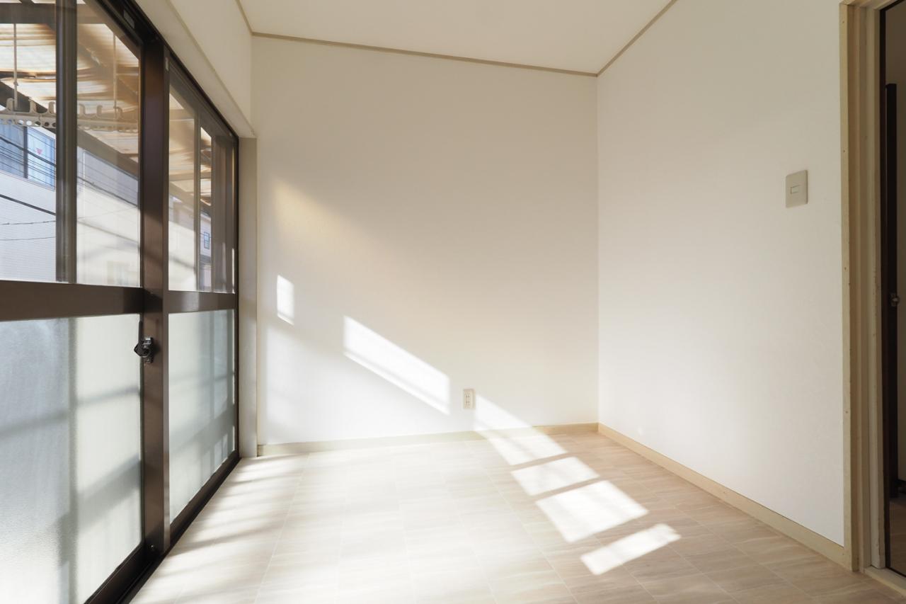 4帖洋室。バルコニーから優しい日の光が差し込む室内。