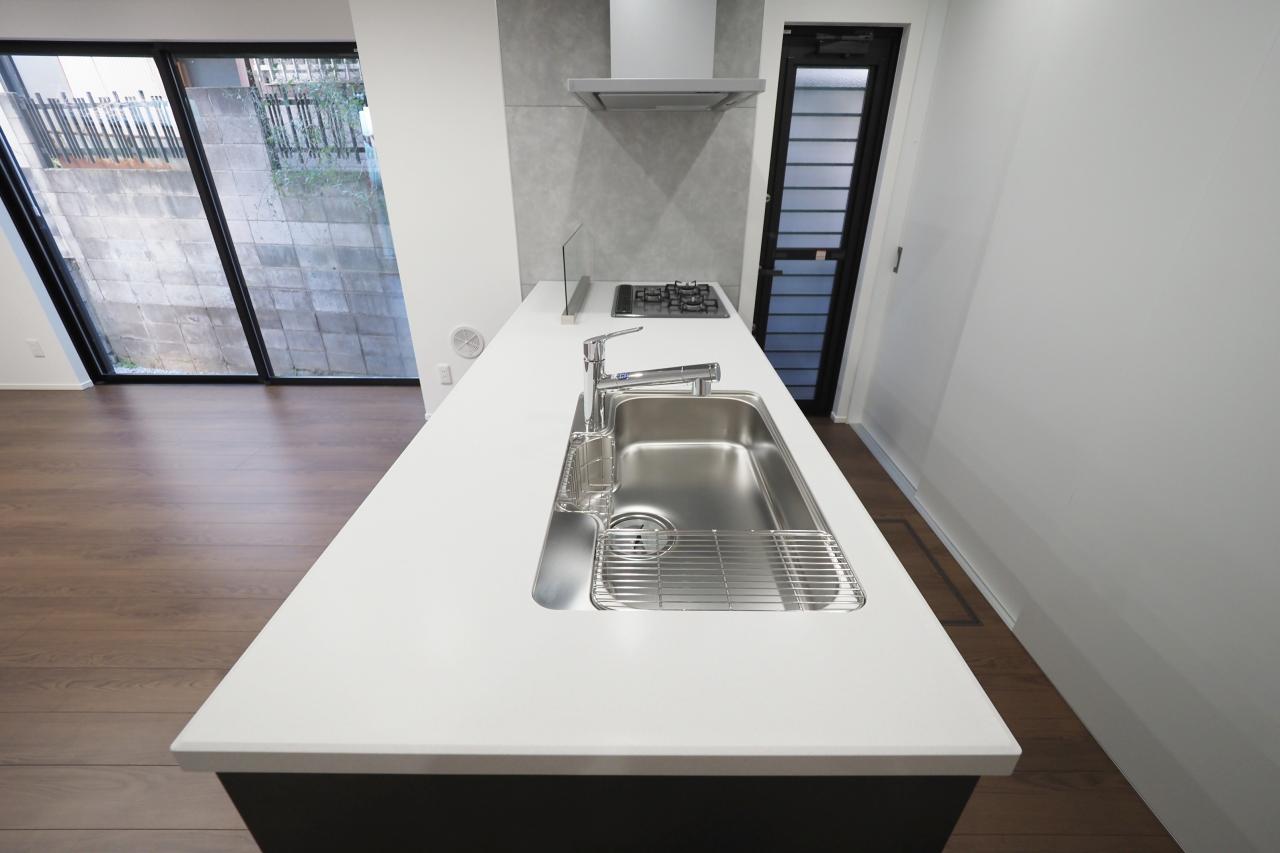 リビングダイニングとの一体感のあるフルフラットキッチンを採用しました。