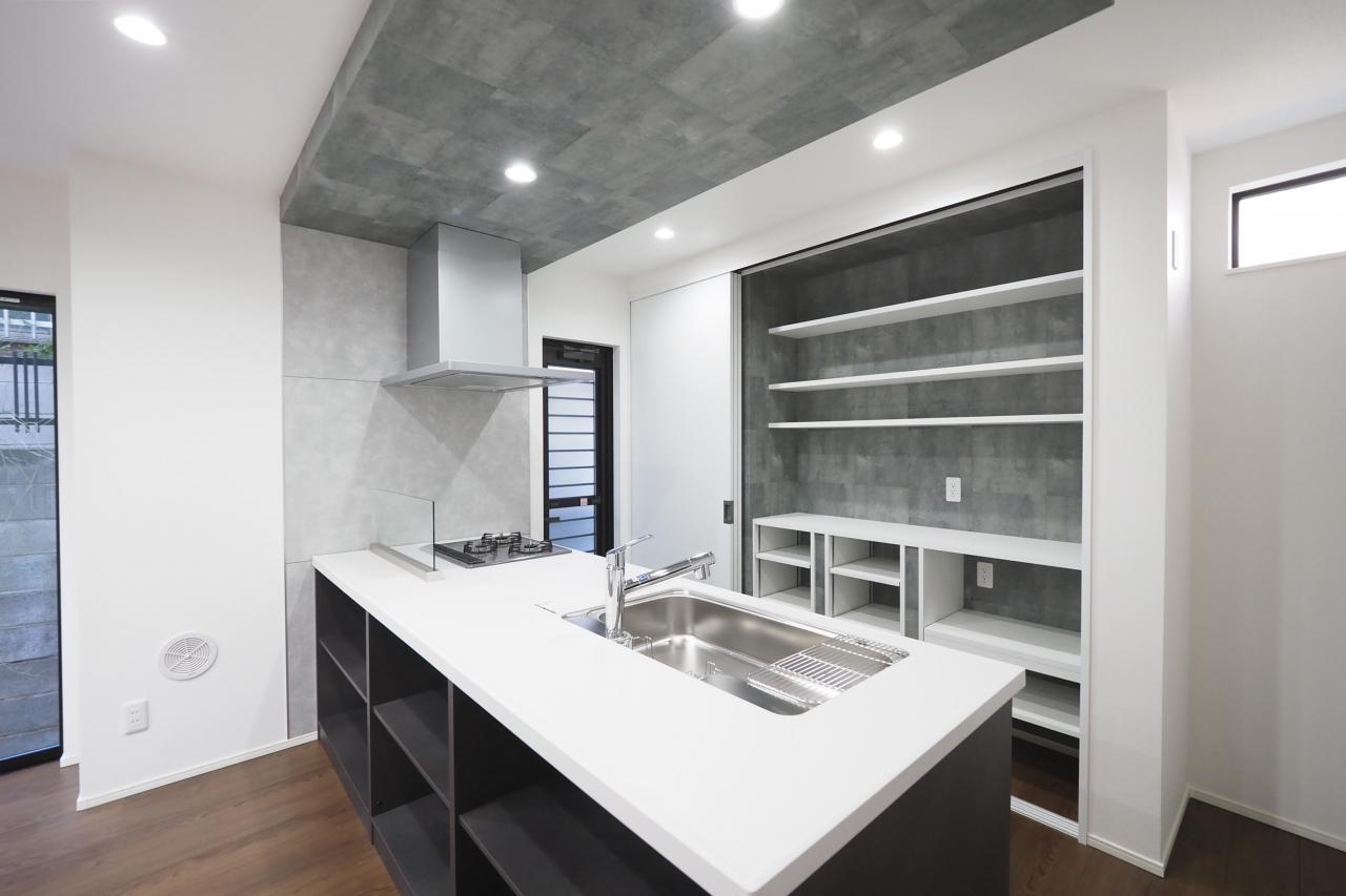 キッチン 背面キッチン収納 皿や調理器具、キッチン家電も1つにまとめて収納できます。