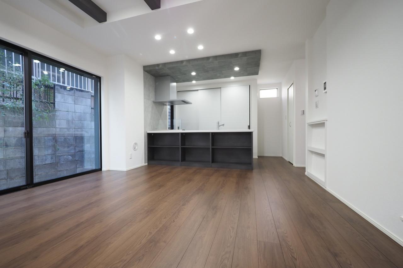 リビングの奥まで見渡せる対面式仕様のシステムキッチン