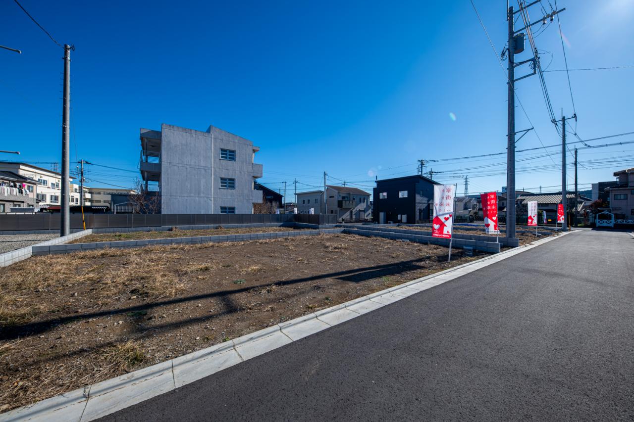| 設備 | 都市ガス / 公営水道 / 汚水:公共下水 開発分譲地内 / 始発駅 / 陽当り良好 / 小学校 徒歩10分以内 / 更地渡し / 建築条件なし / 都市ガス |