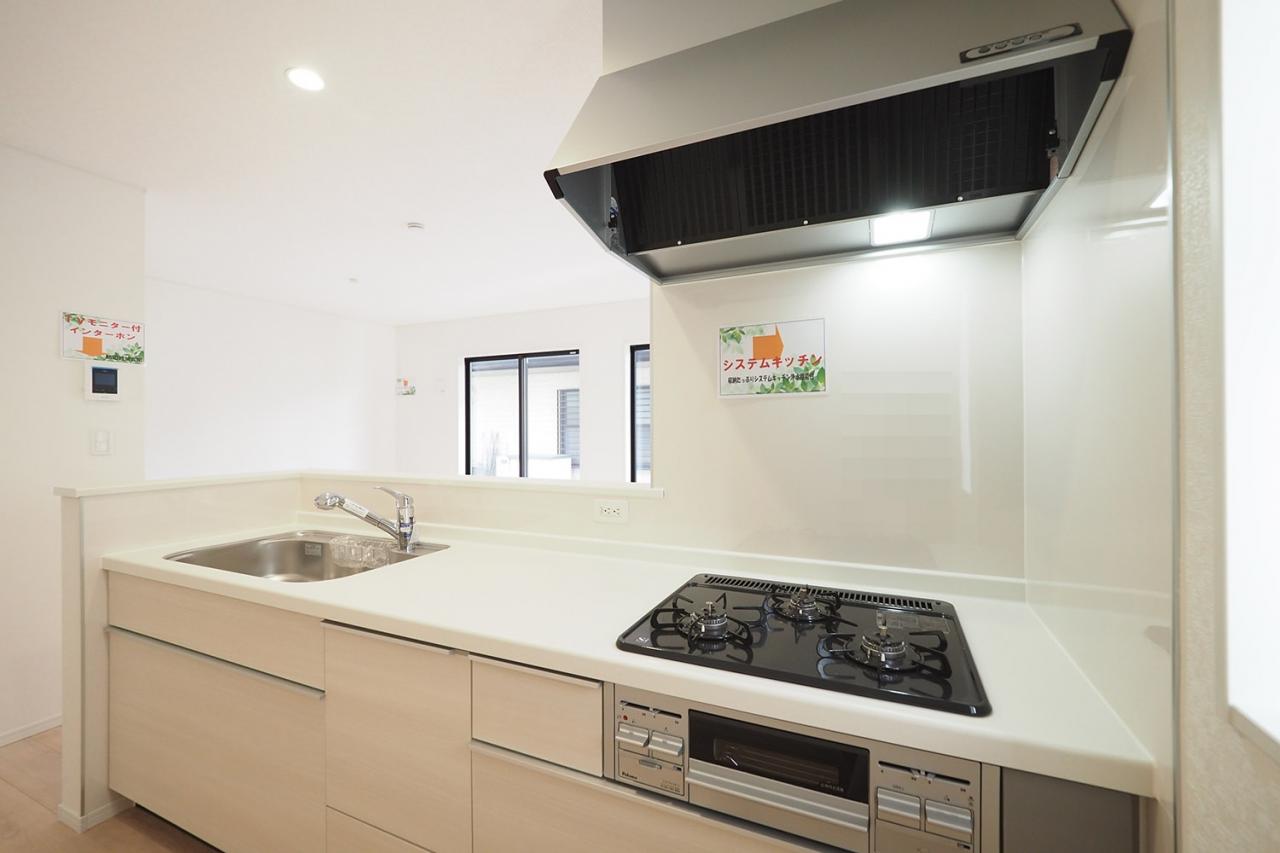 ■料理中でもリビングにいるお子様の様子を見守れる対面キッチン