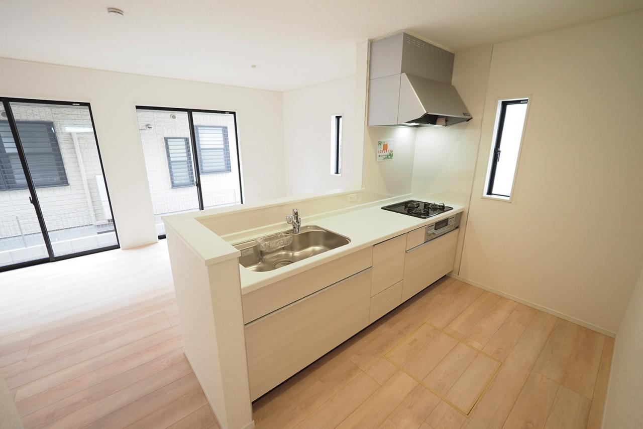 室内は快適な暮らしをサポートする設備も充実しています。リビングが見渡せる対面キッチン、キッチンと水回りが纏まっているので動線が良いことも嬉しいポイントです。陽当たりの良い南東向きのバルコニーはお洗濯物もしっかり乾きます。