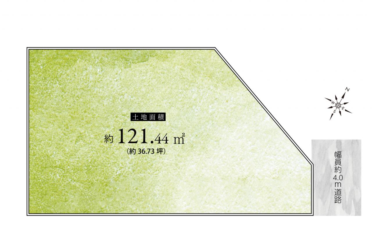 36坪以上のゆとりある敷地。お好きなハウスメーカー・工務店などで建築が可能な、建築条件なし売地です