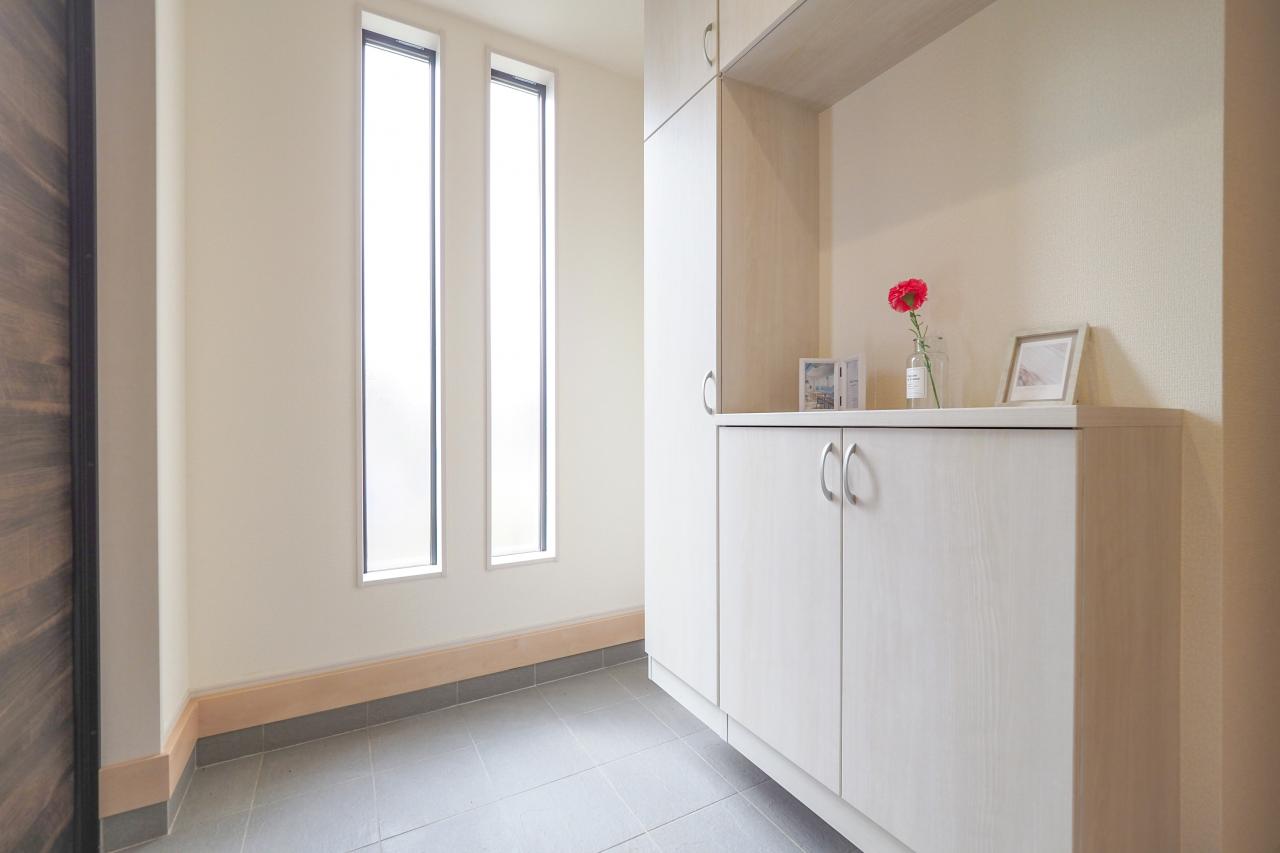 明るい光を取り込む開放的な玄関ホール
