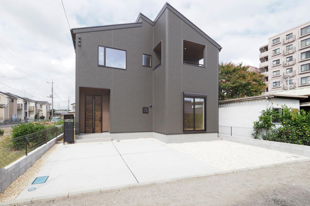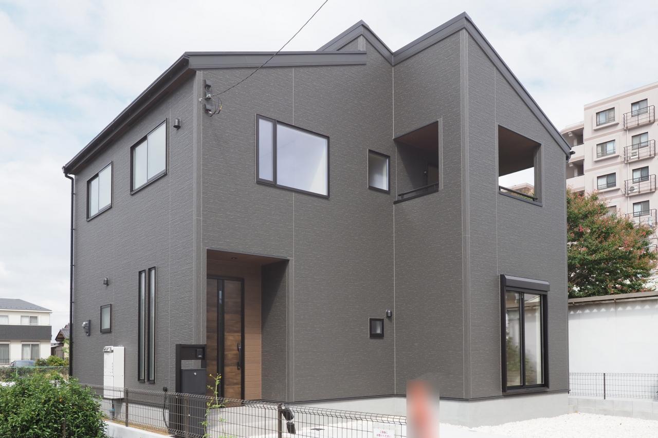 延床113m2超の大型4LDK/フラットなダークグレーの外観が映えるモダンデザイン