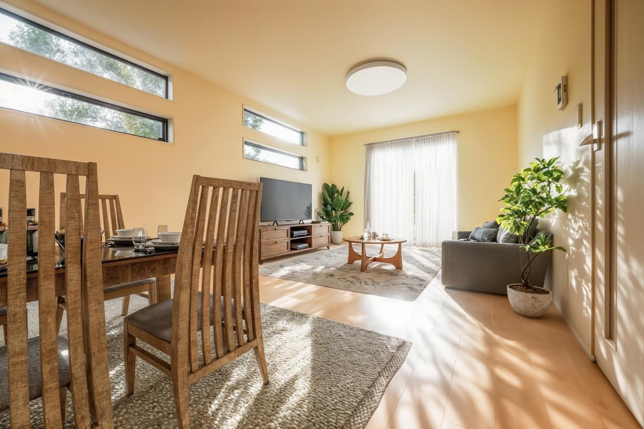 温かな陽光を取り込む、二面採光リビング ※家具や小物はCGによるイメージです