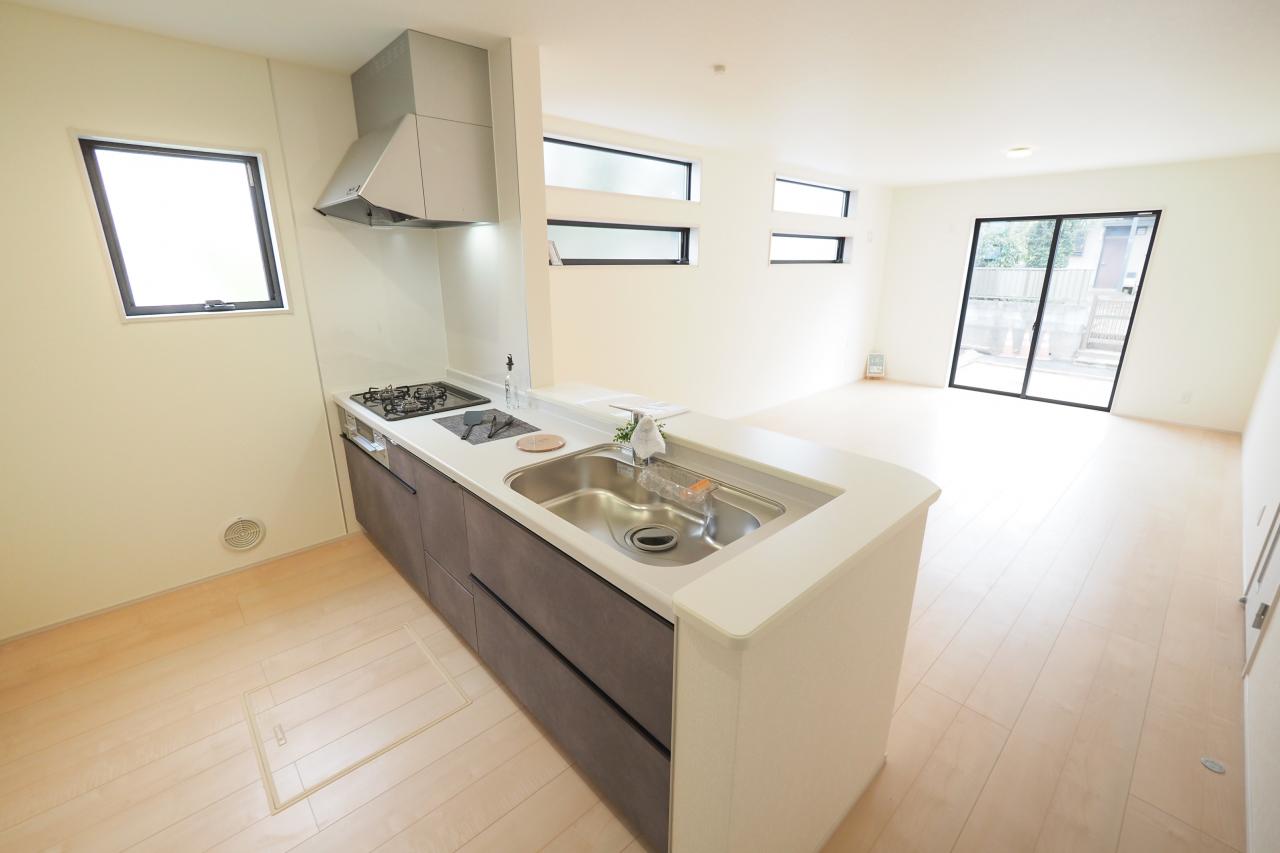 リビングを見渡せるオープン仕様のシステムキッチン