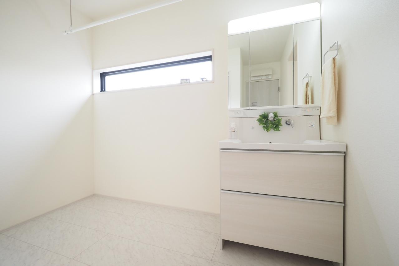 三面鏡シャンプードレッサー付きの広々洗面スペース