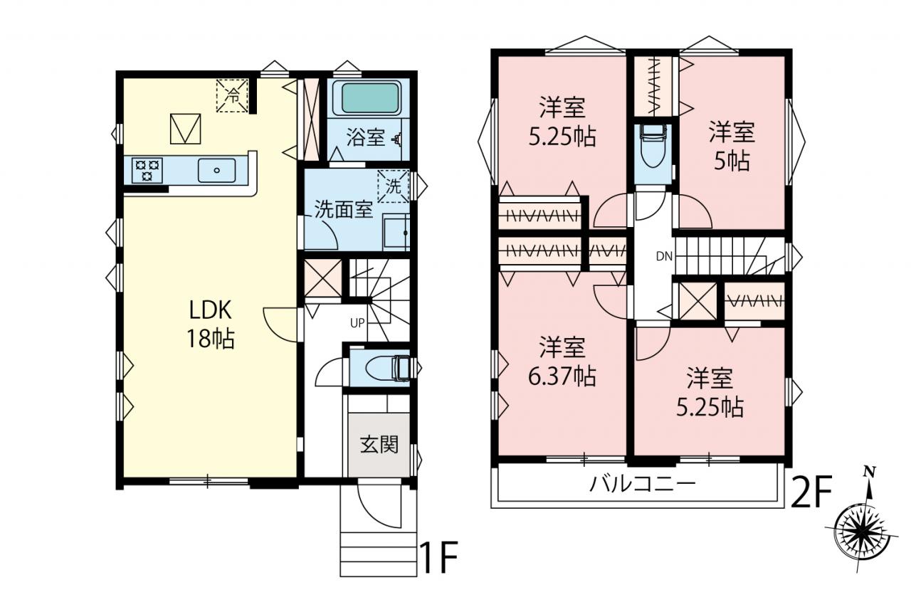 | 土地面積 | 100.45m2(30.38坪)~102.60m2(31.03坪) | 建物面積 | 96.88m2(29.3坪)~99.36m2(30.05坪) |