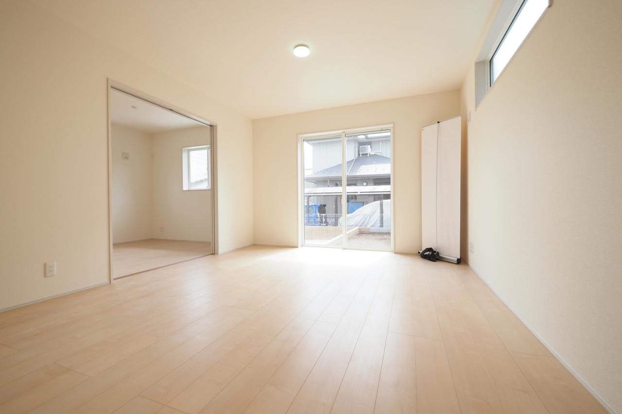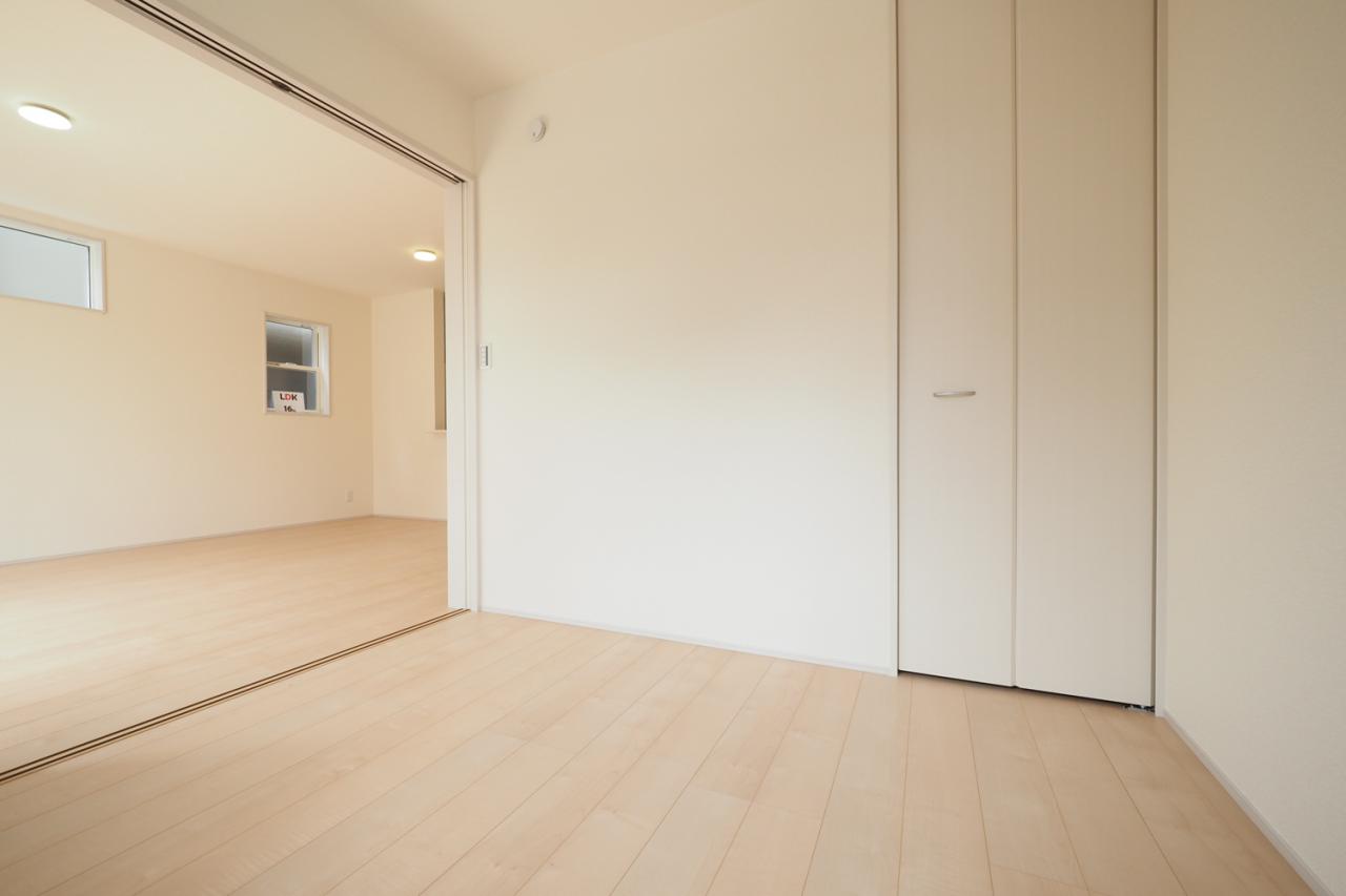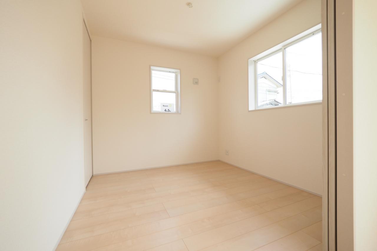 リビング横、4.5帖洋室。お子様の遊び場などに便利な室内。