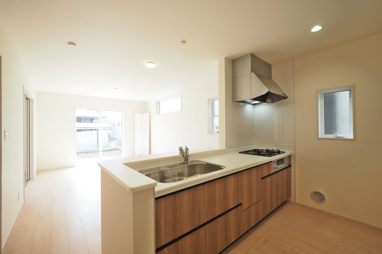 キッチンからリビング全体を見渡せて、お子様にもすぐ目が届くので安心してお料理ができます。