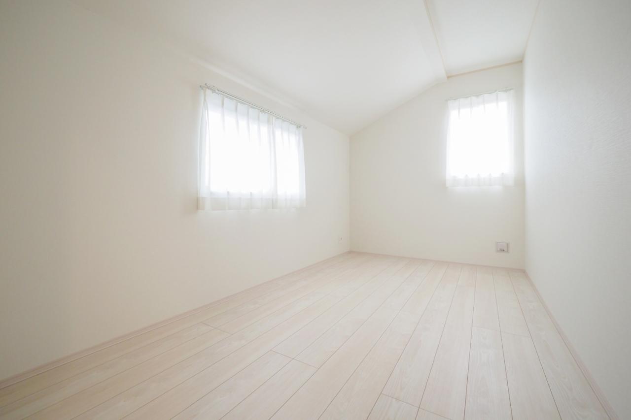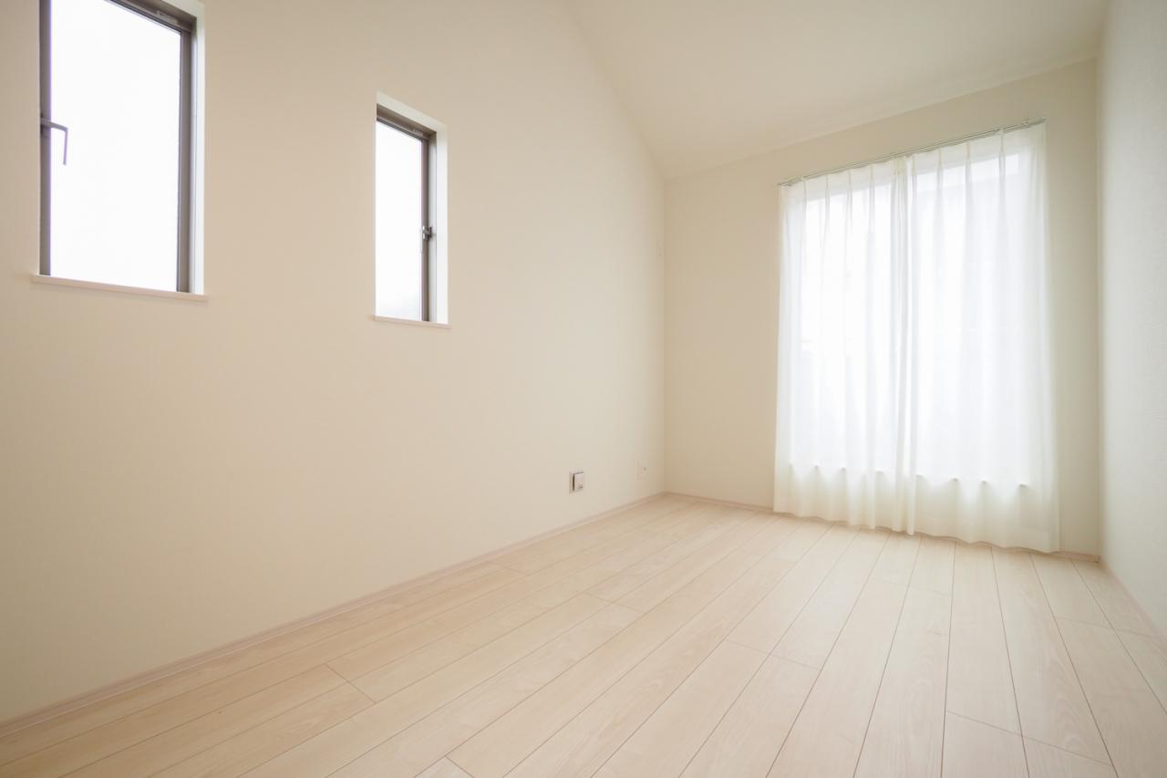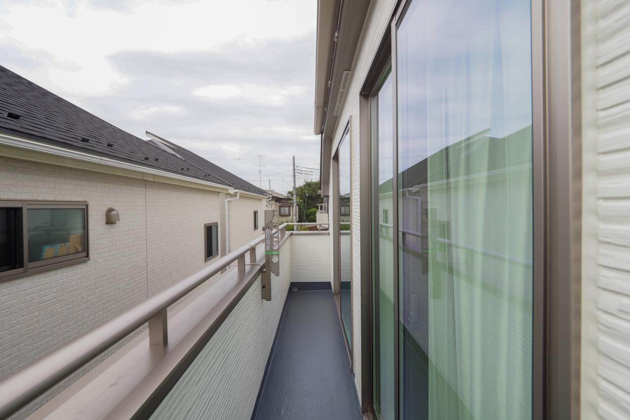 2階各居室は全室2面採光で風通し良好!そして2部屋にまたがって設置された南向きバルコニーで洗濯物もより早く乾きますね!資料のご請求や現地ご見学のご相談など、お気軽にスタッフまでお問合せ下さいませ。