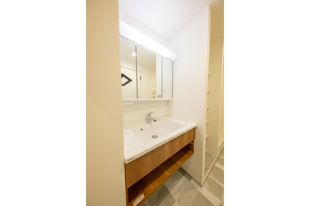 ■サニタリースペース/三面鏡の裏に収納空間を設け、家族一人一人の毎日の使い勝手にも配慮されたサニタリースペース