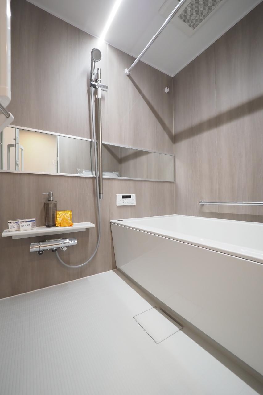 【水回り設備フルリニューアル!】一日の疲れを癒し心身ともに優しく温めてくれるバスルーム。快適なバスタイムをお愉しみください。スタイリッシュで寛ぎのあるバスルームです