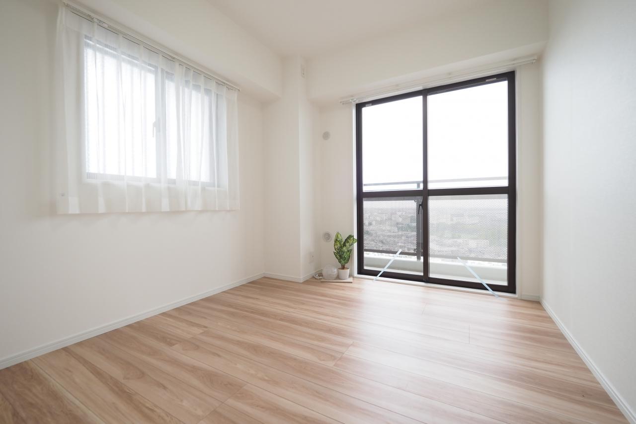 【5.5帖洋室】2面採光で明るい4.5帖の洋室です!様々なインテリアに合わせやすい、落ち着いた印象の室内です!ぜひ現地でご体感ください!