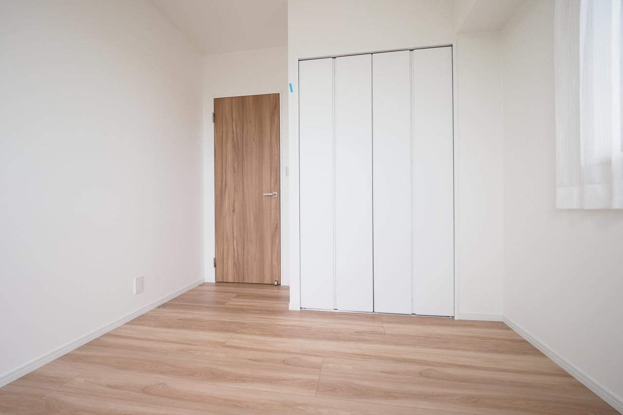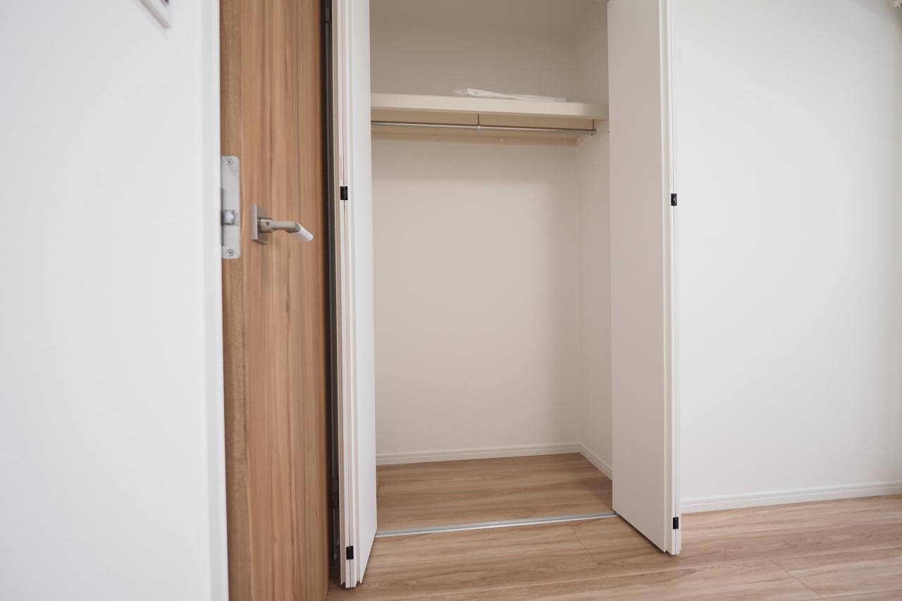 【収納スペース】全室クローゼット完備。中身がひと目でわかる両開きのクローゼット。ご家族の成長と共に増えていく荷物も楽々しまえる収納を備えました