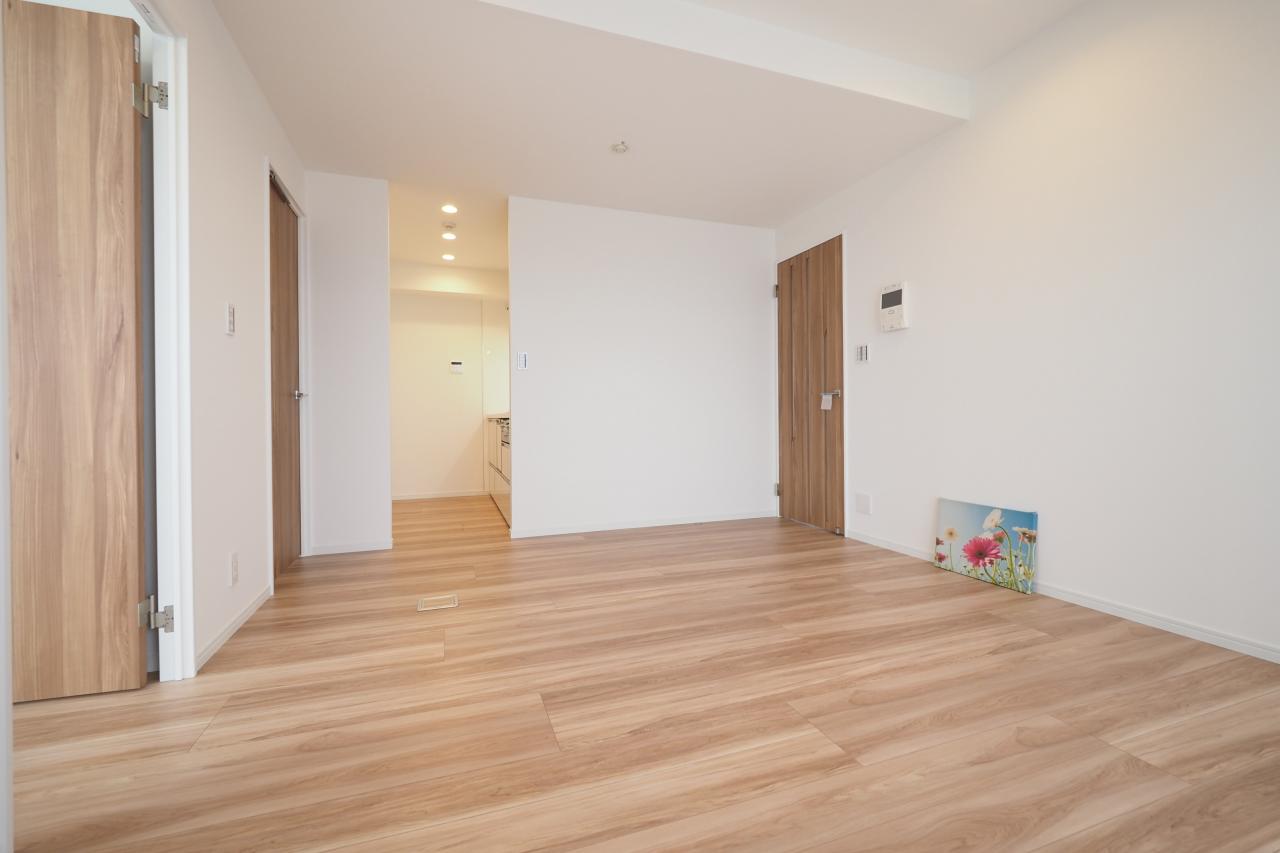 【クロス・フローリングなどフルリフォーム済み】美しい木目のフローリングが優しい印象のリビング。リフォーム工事完了済みで大変清潔感がございます!