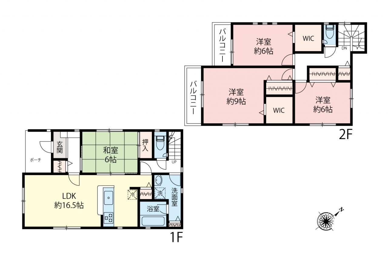 全室6帖以上 対面キッチン 和室あり WIC2箇所 駐車並列2台可